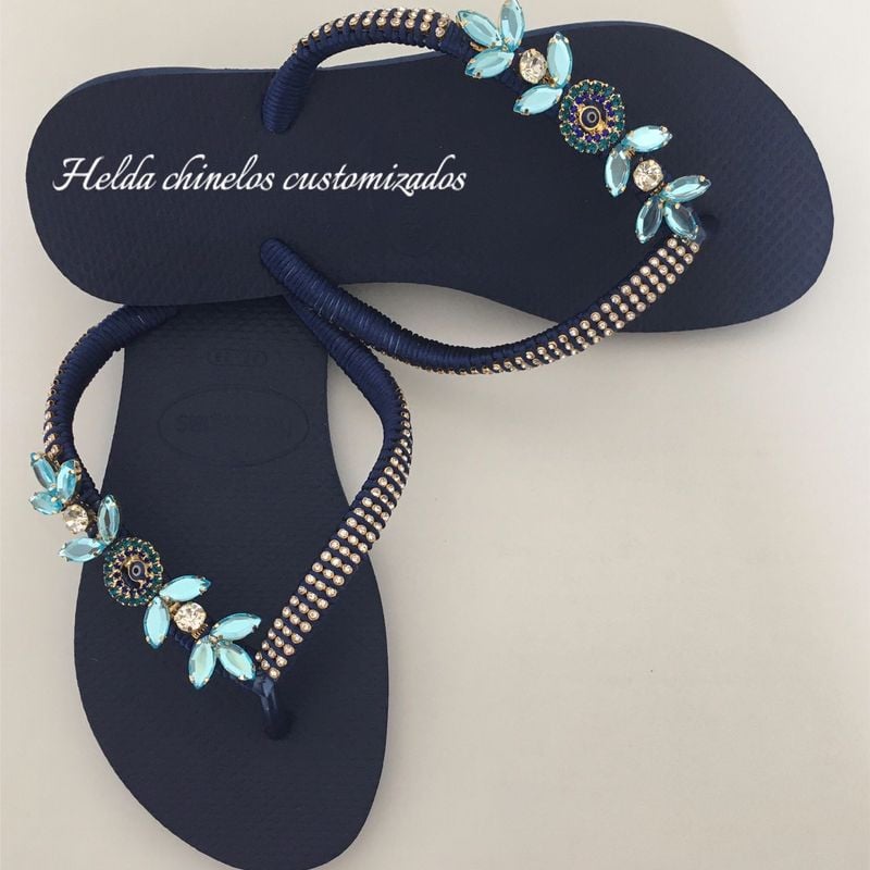 Chinelos Customizados de Luxo Havaiana Decoradas Joias Banhadas