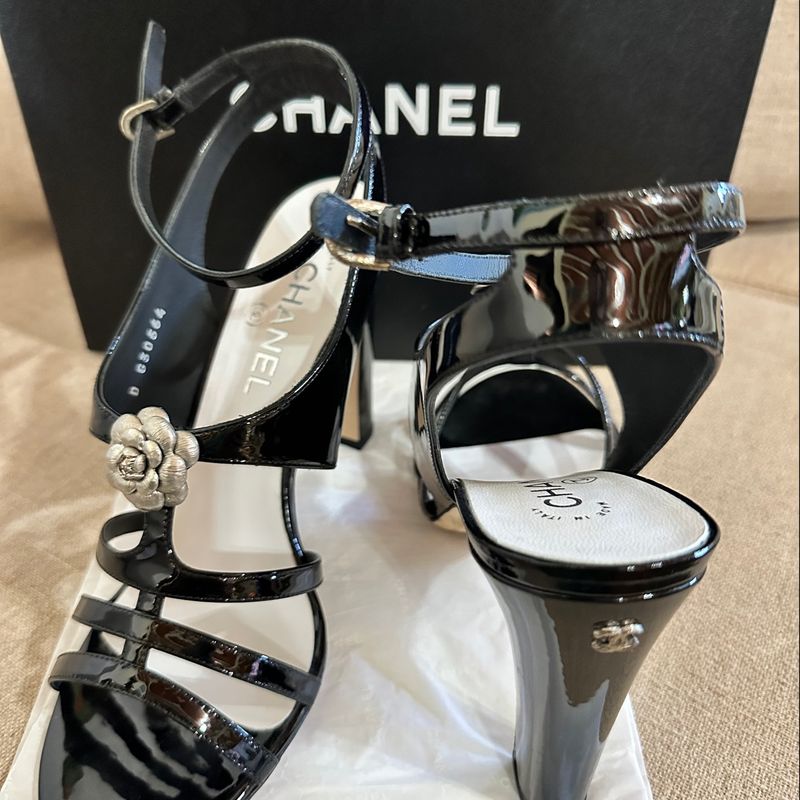 Sandalia chanel clearance, Sand lia Chanel Original Cam lia em Verniz Novinha Sand lia clearance