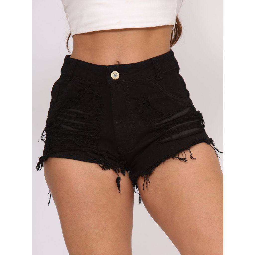 Short Jeans Feminino Destroyde preto rasgado jeans Premium