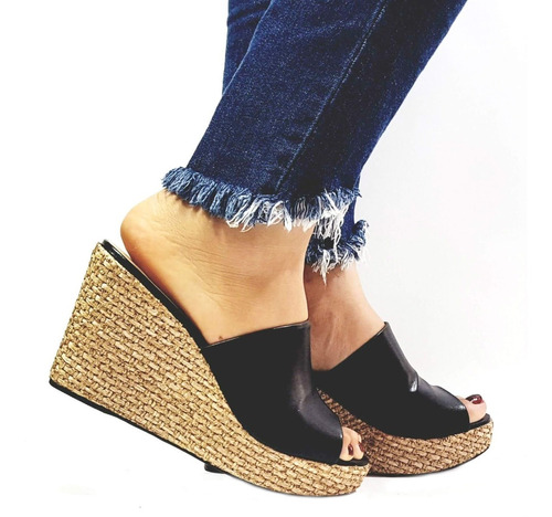 Tamanco clearance fechado plataforma, Tamanco Fechado na Frente em Couro Leg timo 7676 Preto clearance