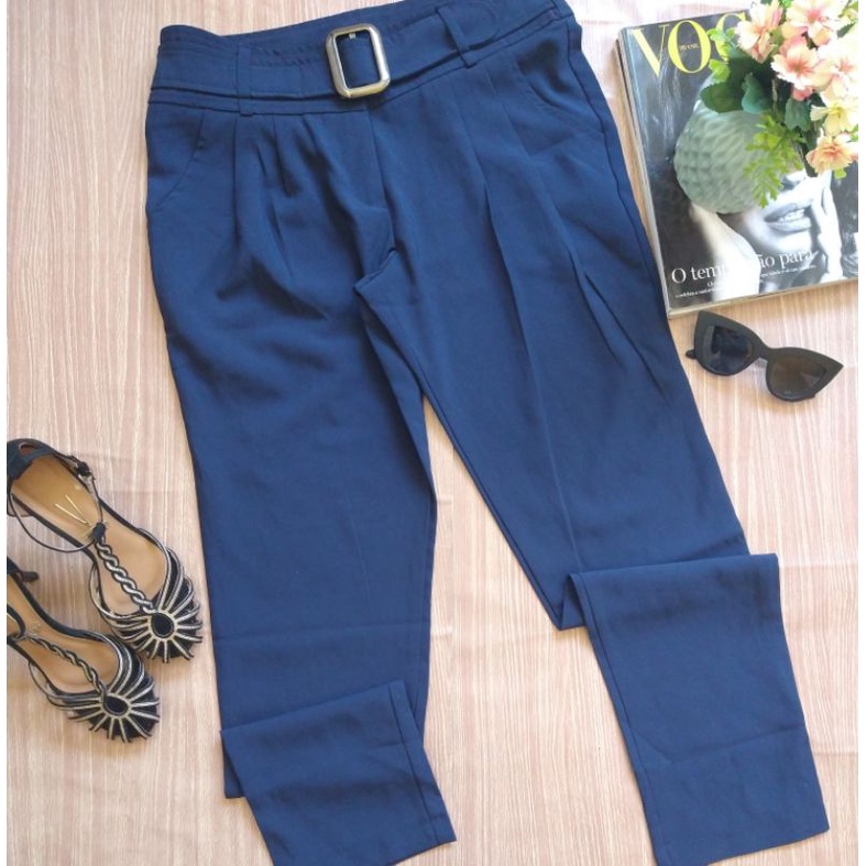 Cal a Social Feminina Swany Com Cinto alfaiataria Azul Marinho