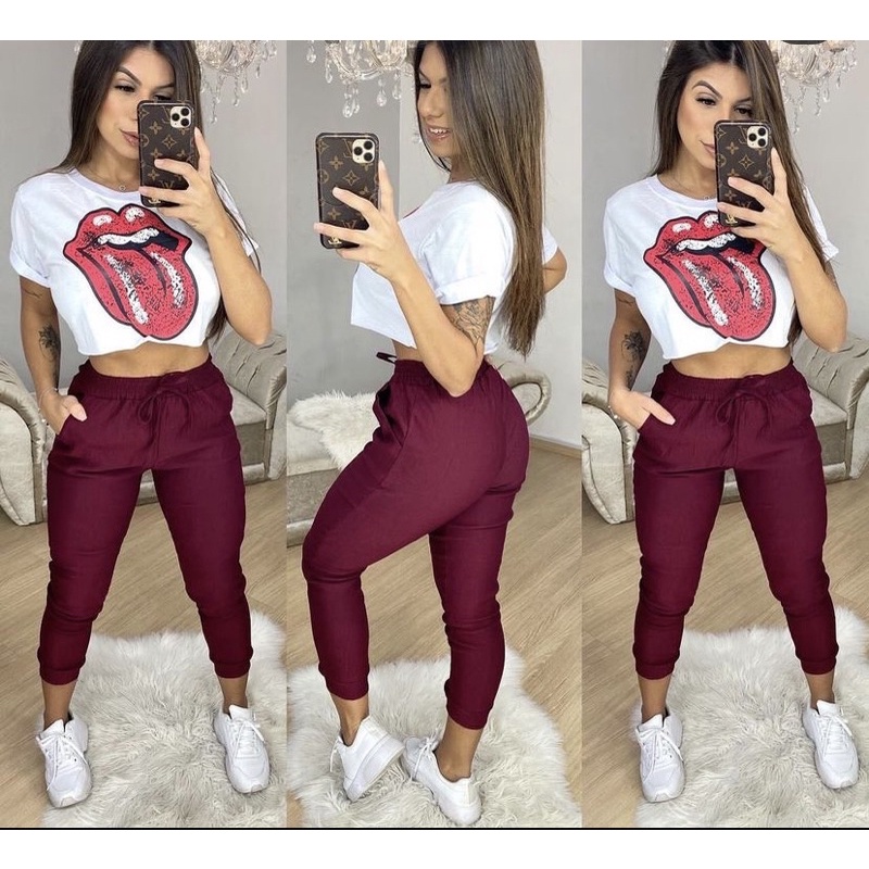 Cal a Jogger Feminina Bengaline Vinho Blogueira Shopee Brasil