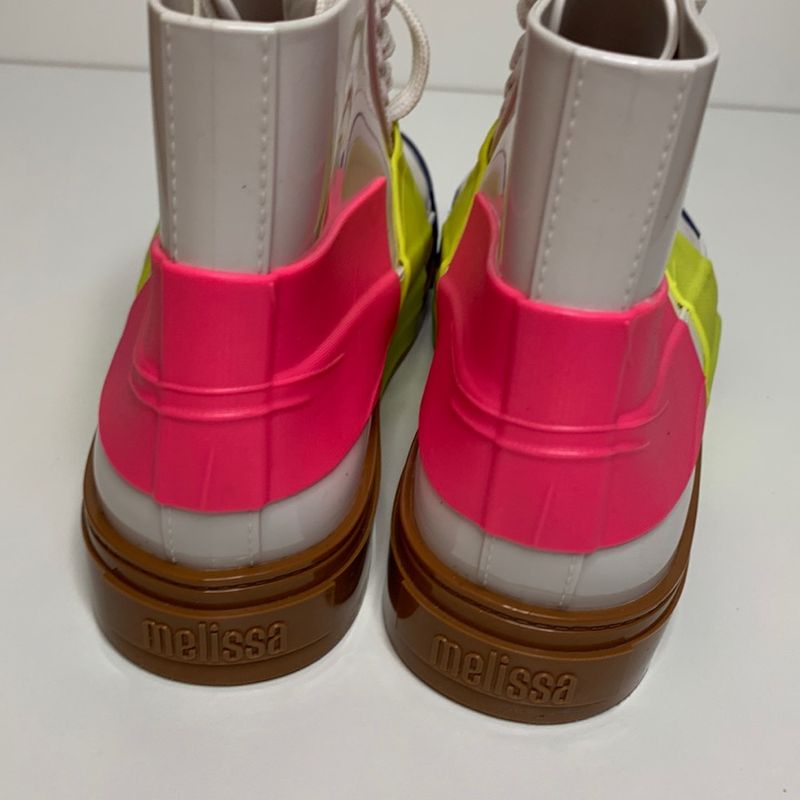 T nis Melissa Cano Alto Branco com Rosa e Amarelo Lim o T nis
