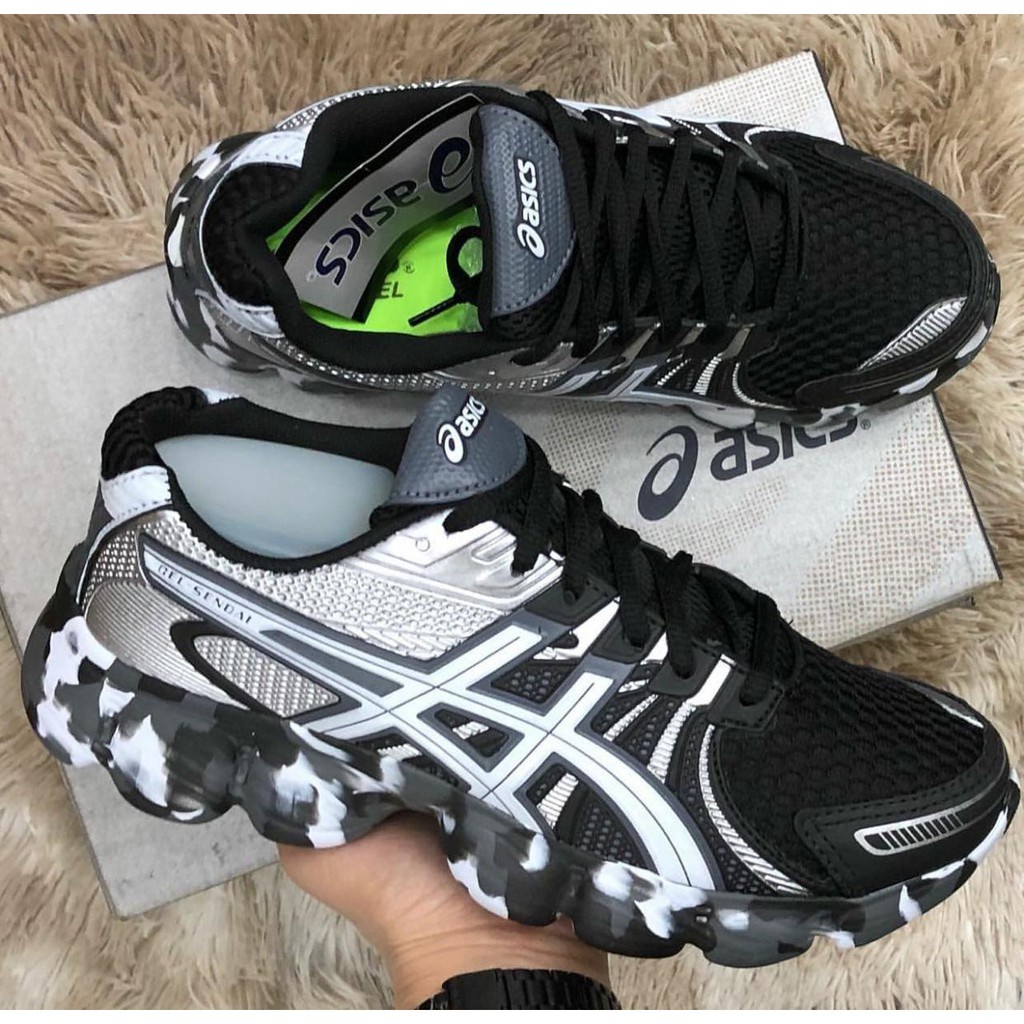 Tenis Asics Colorido Masculino e Feminino Azul e Cinza Rosa Mega