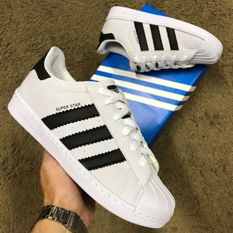 T nis Adidas Superstar Branco com Preto Feminino Masculino Lindo e