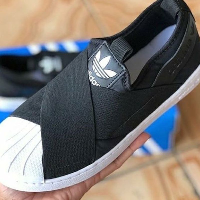 T nis Adidas Superstar Slip On El stico Preto Branco Feminino