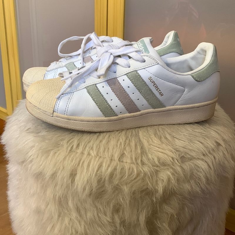 Tenis adidas masculino clearance tamanho 36, Adidas Superstar Branco com Listras Verde e Rosa Claro Tamanho 36 clearance