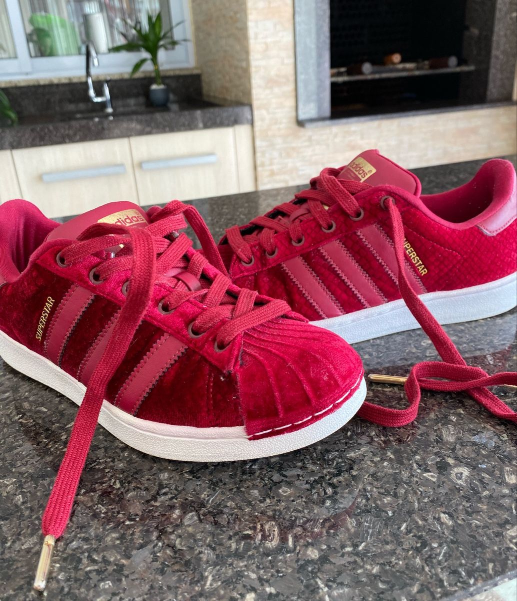 Adidas Superstar Vermelho Veludo T nis Feminino Adidas Usado