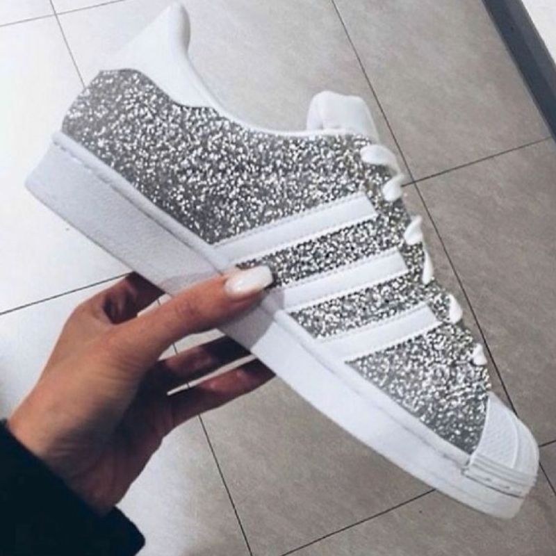 Tenis adidas superstar clearance prata com glitter, Adidas Superstar Preto com Brilho T nis Feminino Adidas Usado clearance