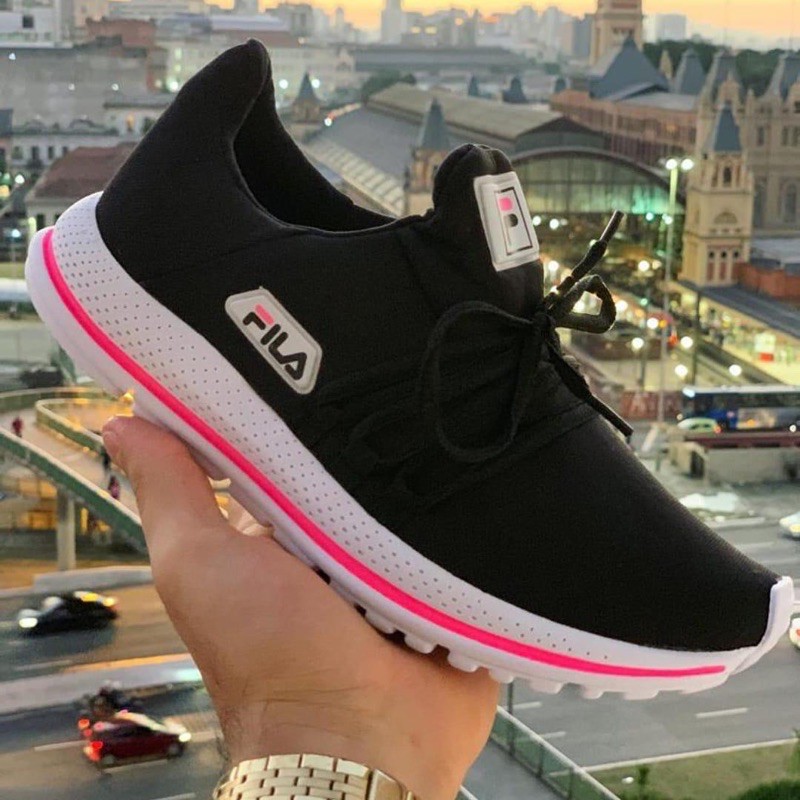 Tenis fila rosa clearance e preto, T nis Fila Racer F1 Preto Rosa Mundo dos Cal ados clearance