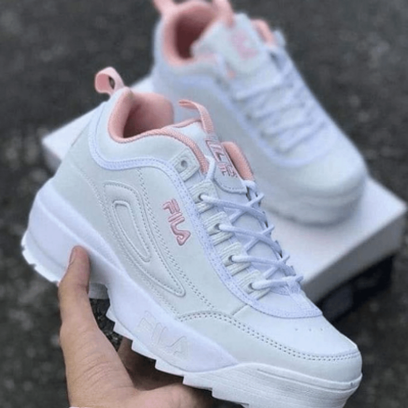 Tênis fila disruptor clearance branco e rosa