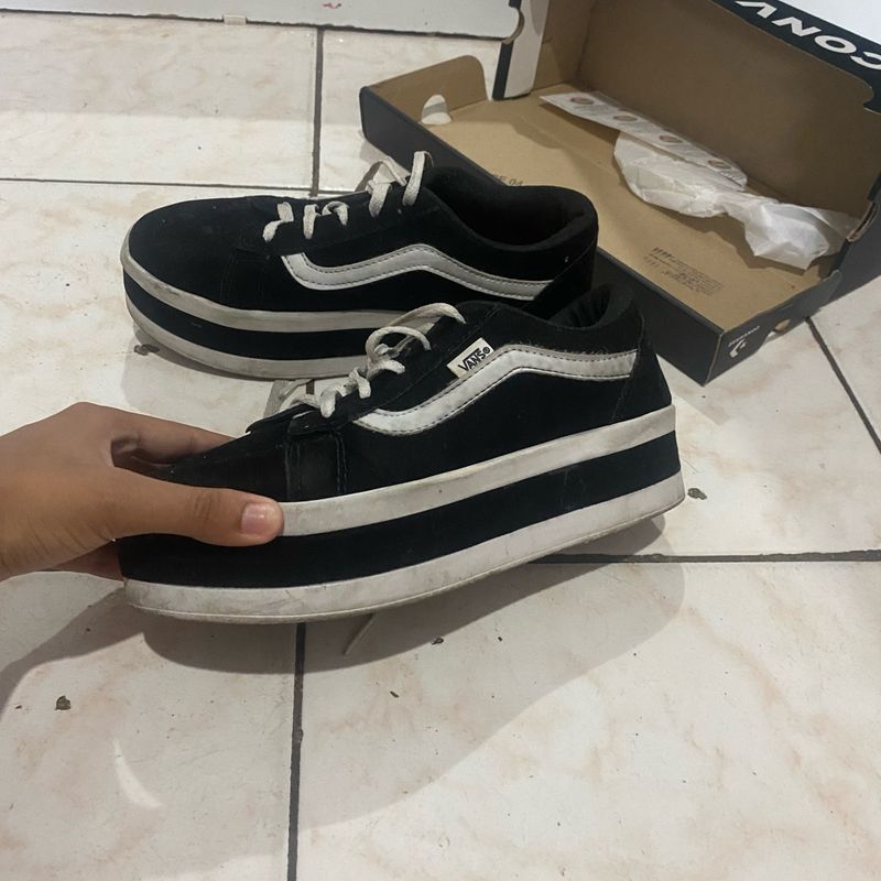 T nis Vans com Plataforma Preto e Branco Listrado de Veludo