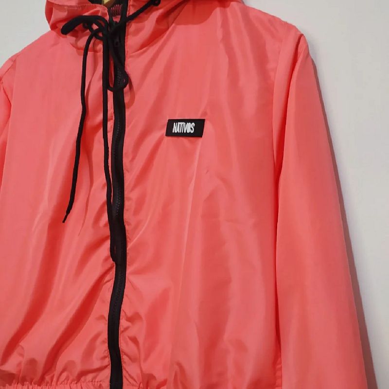 Jaqueta Corta Vento Cropped Nativos Cor Salm o Neon Tamanho P