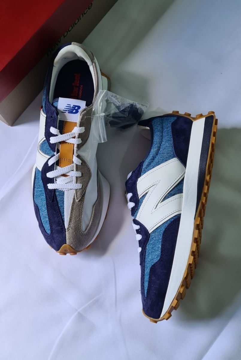New balance 327 clearance masculino azul, Tenis New Balance 327 MS327SFC Cinza Laranja Azul NewSkull clearance