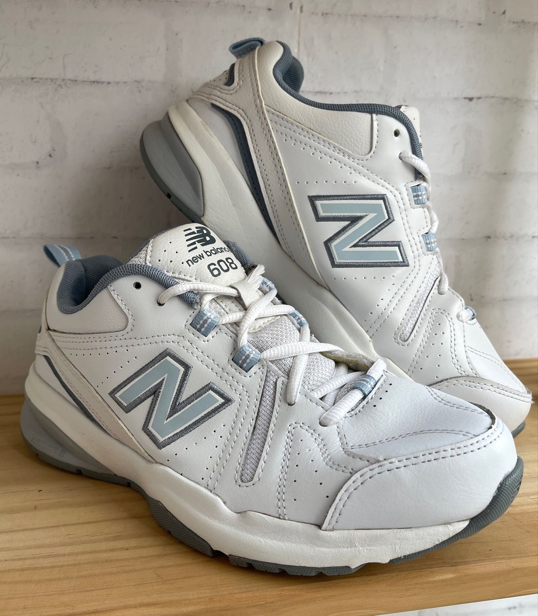 New Balance T nis feminino 608 V5 Cross Trainer Branco Azul claro