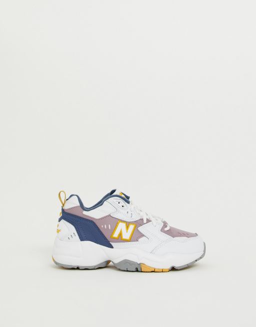 New Balance 608 Vita och lila sneakers med grov design ASOS