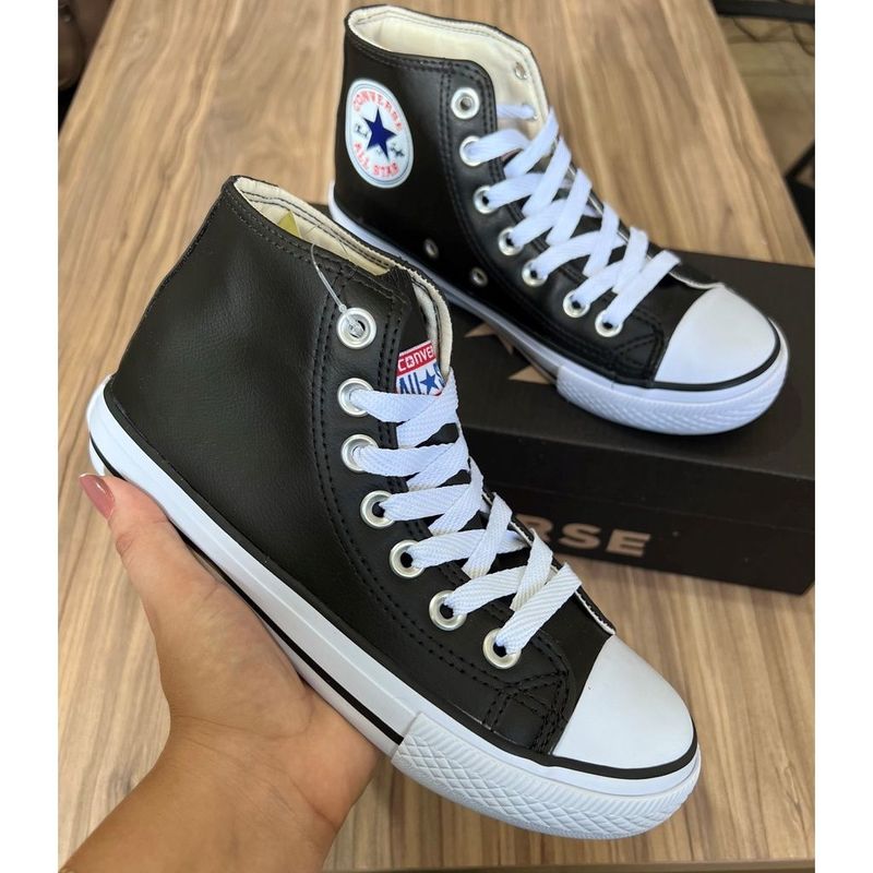 T nis All Star Converse Chuck Taylor Couro Preto Cano Alto all