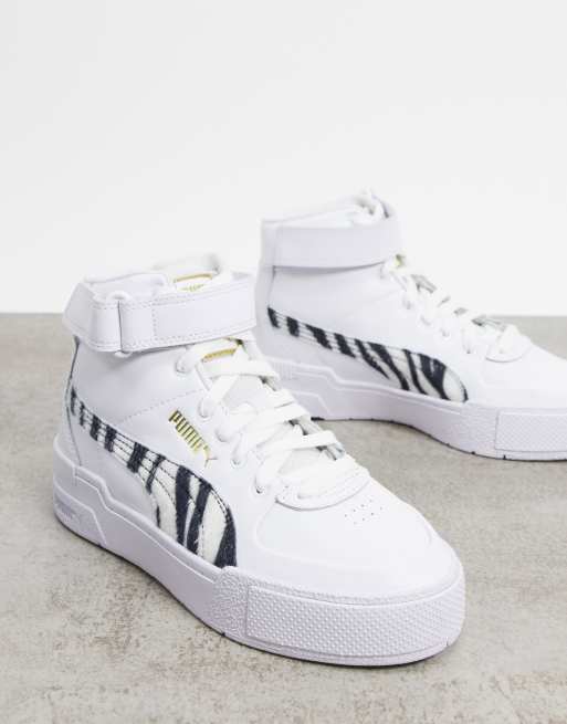 Puma Cali Sport Hi Top trainers in zebra white exclusive to ASOS