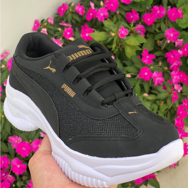 TENIS PUMA PRETO COM BRANCO Garota Fashion