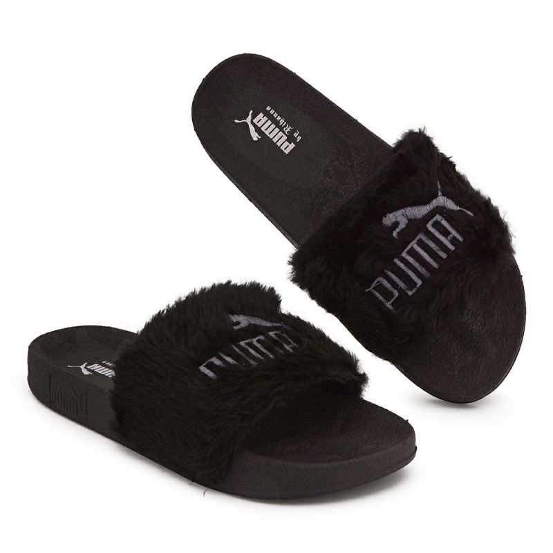 Chinelo Slide Sand lia Puma Veludo Preto Feminino Borracha