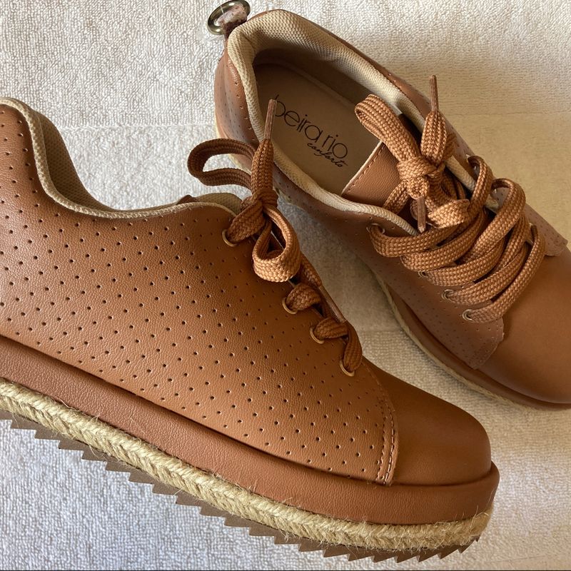 T nis Marrom com Detalhe em Palha T nis Feminino Beira Rio Nunca