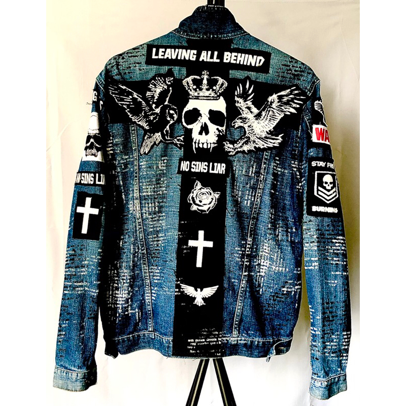 Jaqueta rock jeans caveira customizada metal tamanho g motoqueiro