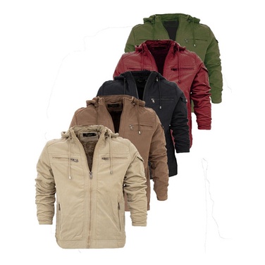 Jaqueta Masculina Sarja Forro Interno Pelo Capuz Remov vel