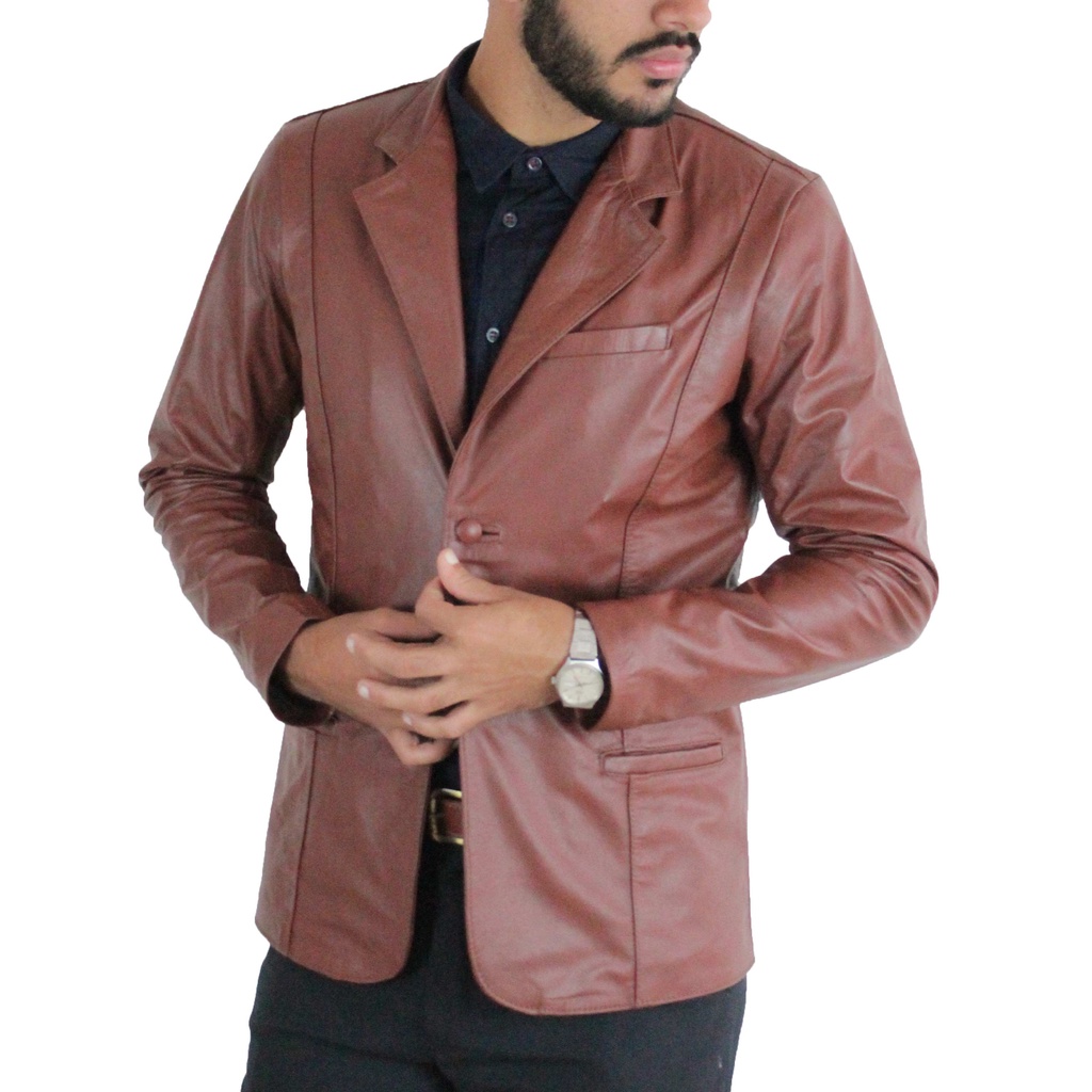BLAZER MASCULINO SLIM DE COURO LEGITIMO. SOB MEDIDA Shopee Brasil