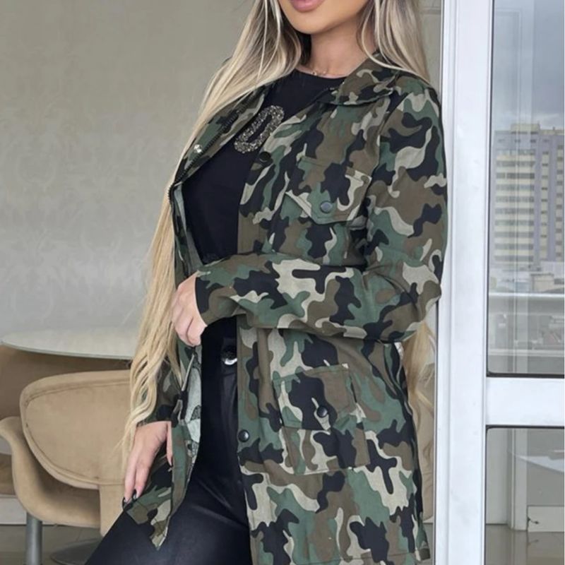 Jaqueta Parka Feminina Camuflada Jaqueta Ex rcito Longa Black