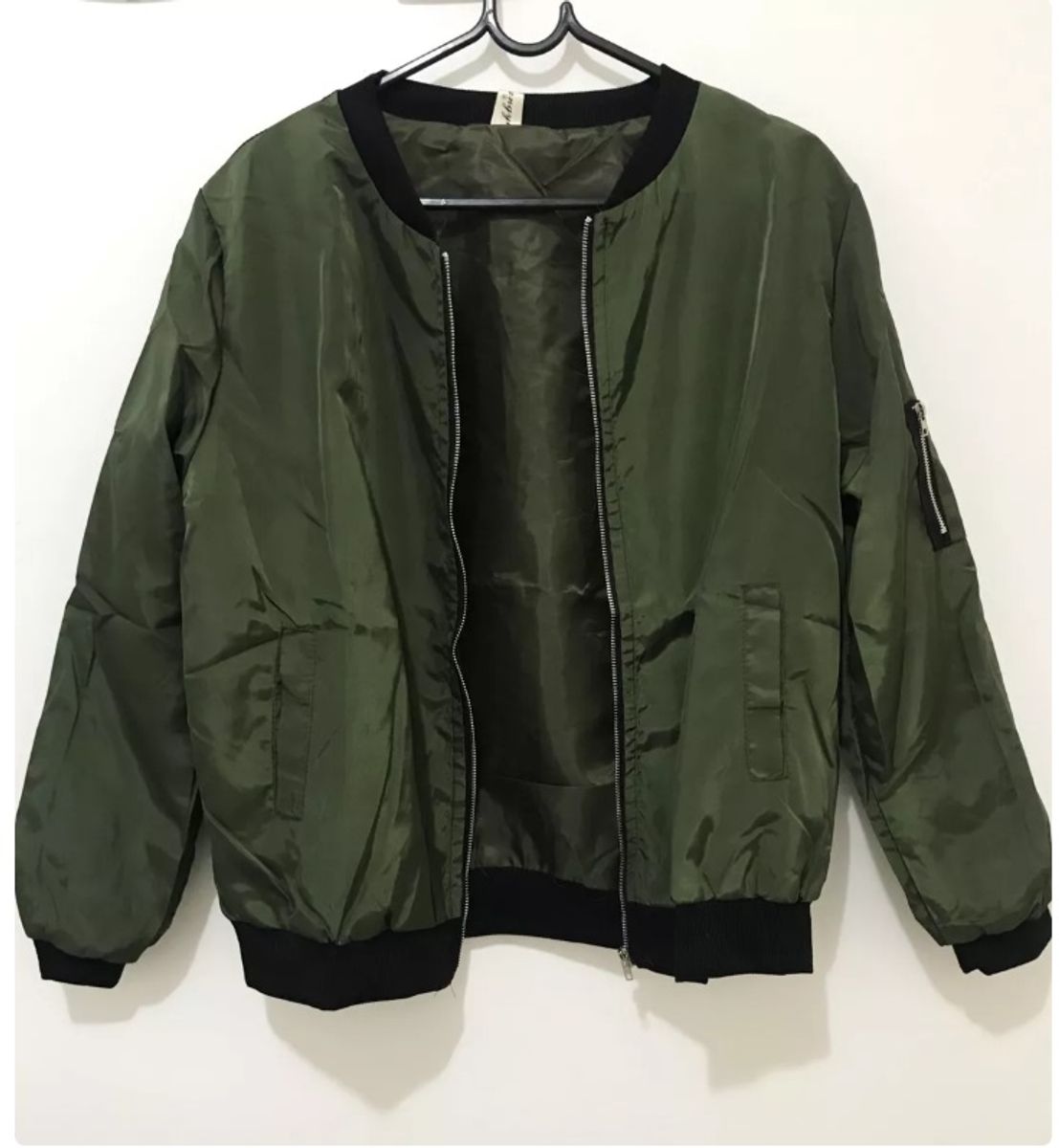 Jaqueta Bomber Verde Militar Feminina Casaco Feminino Nunca