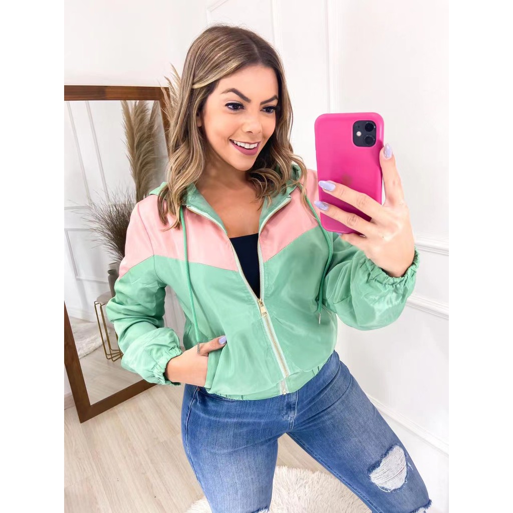 Jaqueta Bomber Corta Vento Feminina Forrada capuz E Bolsos