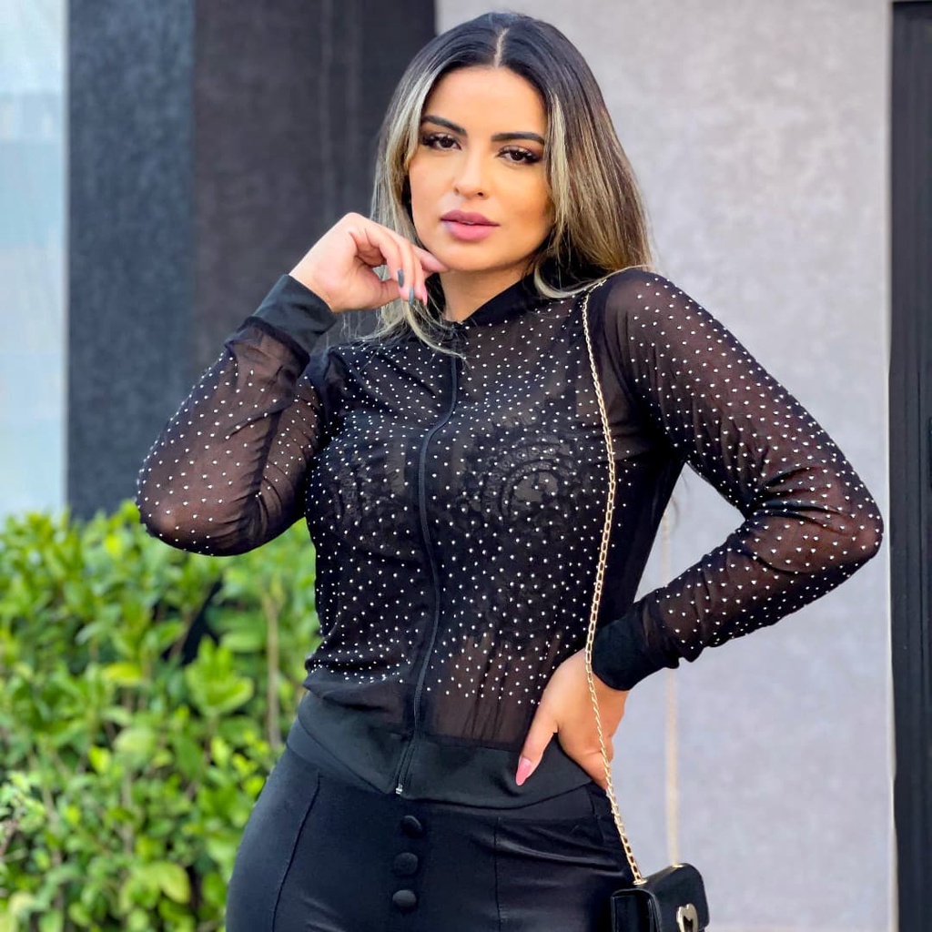 Jaqueta Bomber Tule Feminina Com Pedrarias Ponto de Luz Moda