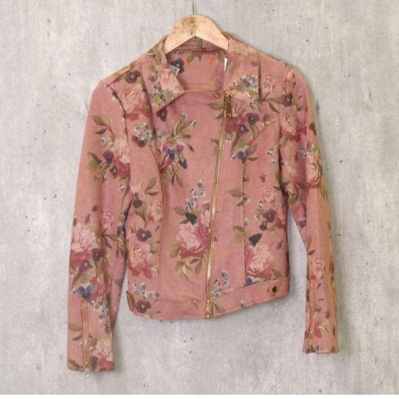 Jaqueta Suede R se Floriada Casaco Feminino Renner Blue Steel
