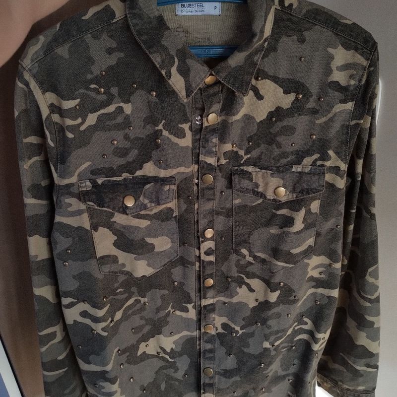Jaqueta Jeans Camuflada Casually Casaco Feminino Blue Steel