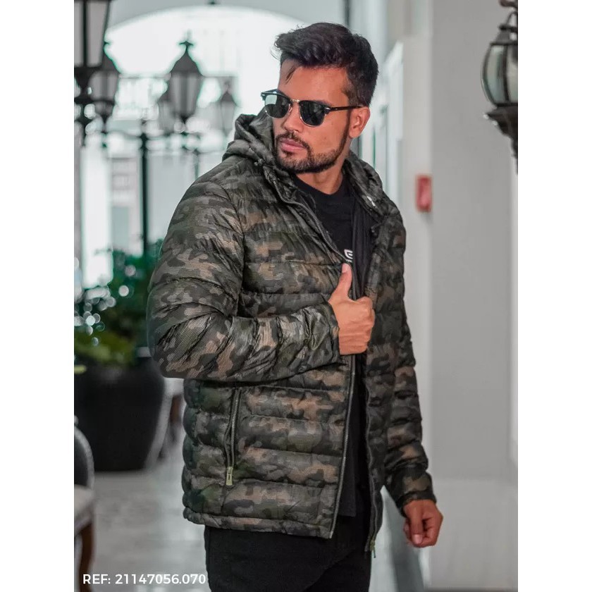 Jaqueta clearance nylon camuflada, C A BR Jaqueta Puffer de Nylon Camuflada com Bolsos de Z per e clearance