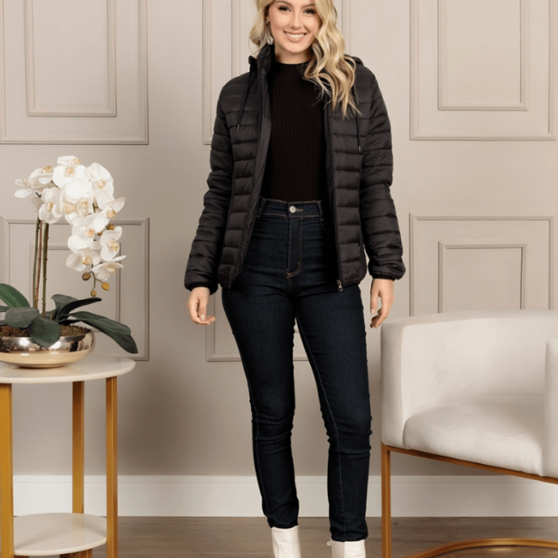 Jaqueta Nylon Imperme vel Feminina Preta Casaco de Frio Puffer