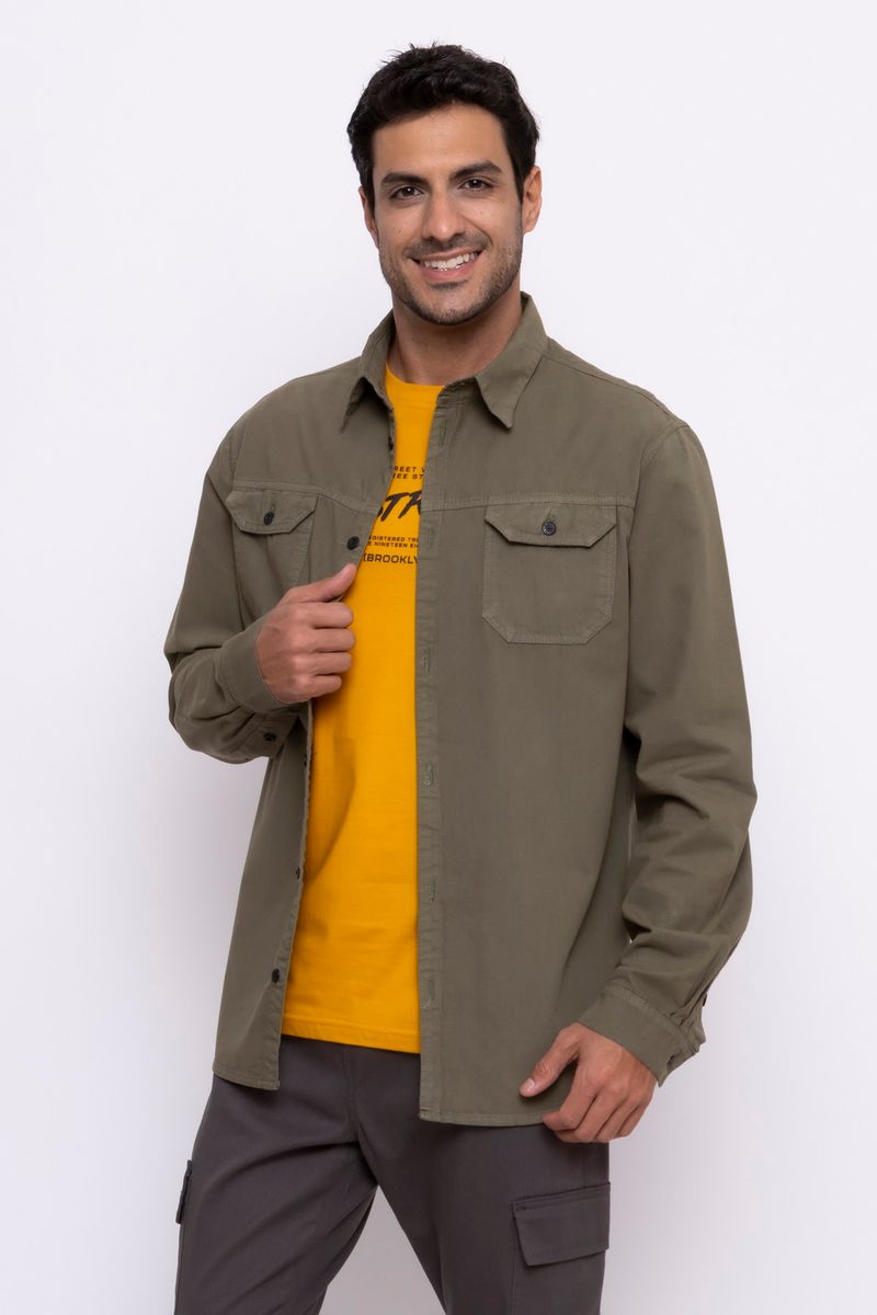 Camisa OFFERT Jeans Premium Slim Fit Verde Militar Masculina Faz