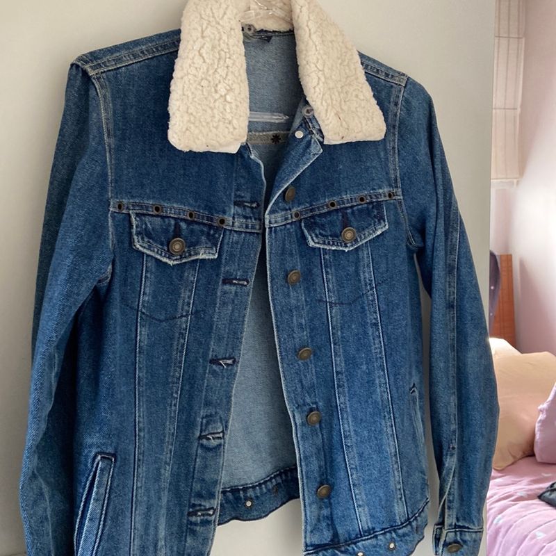 Jaqueta Jeans Azul Forrada com Pelo Feminina Sob Babadotop