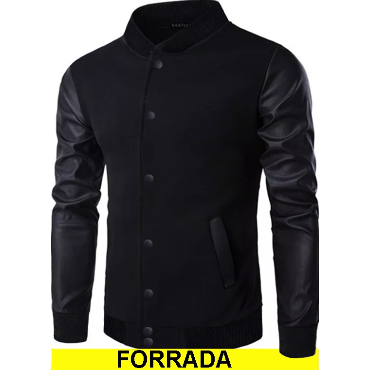 Jaqueta Masculina College Varsity Mangas Em Couro Ecol gico
