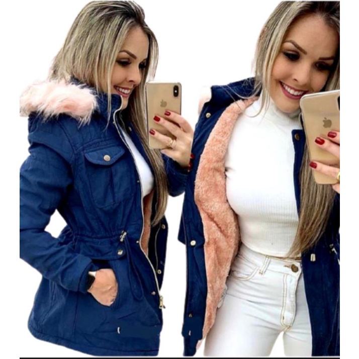Parka casaco forrada pelinho com capuz bolsinho Shopee Brasil