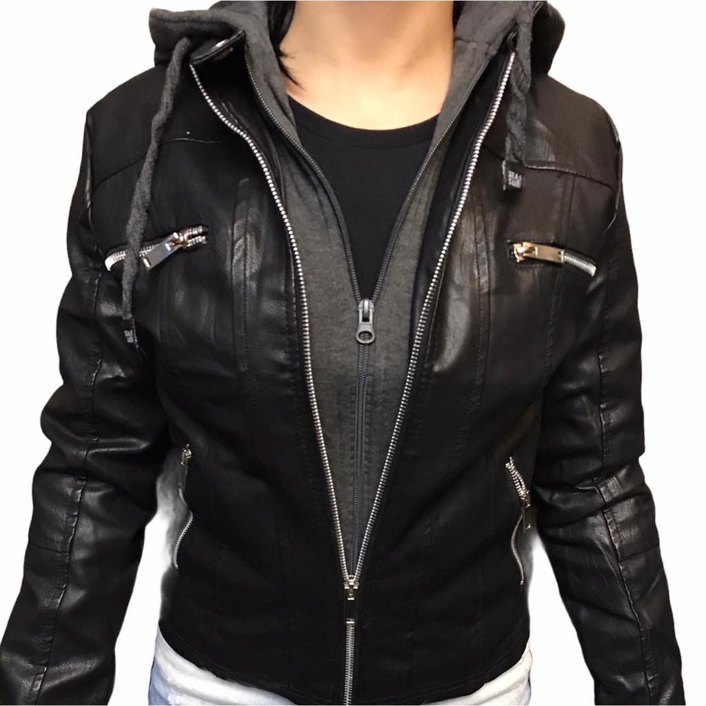 Jaqueta de couro clearance com touca feminina, Chowsir Jaqueta feminina vintage de couro sint tico com capuz para clearance