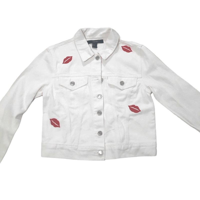 Linda Jaqueta de Sarja Branca Detalhes Beijo Barata Forever 21