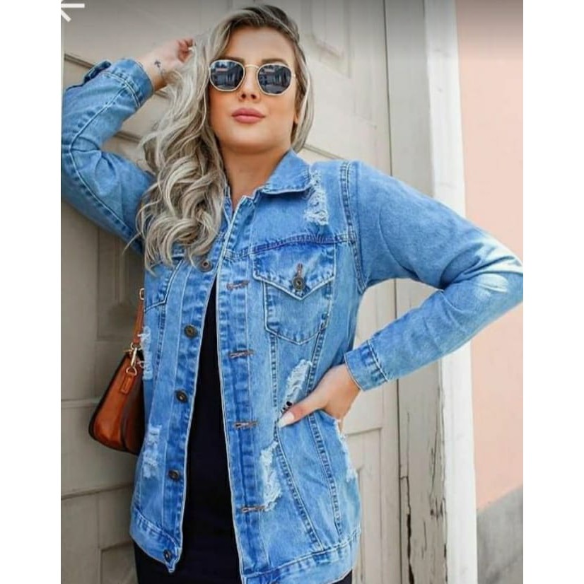 Jaqueta jeans Feminina Max Destroyed Manga Longa Shopee Brasil