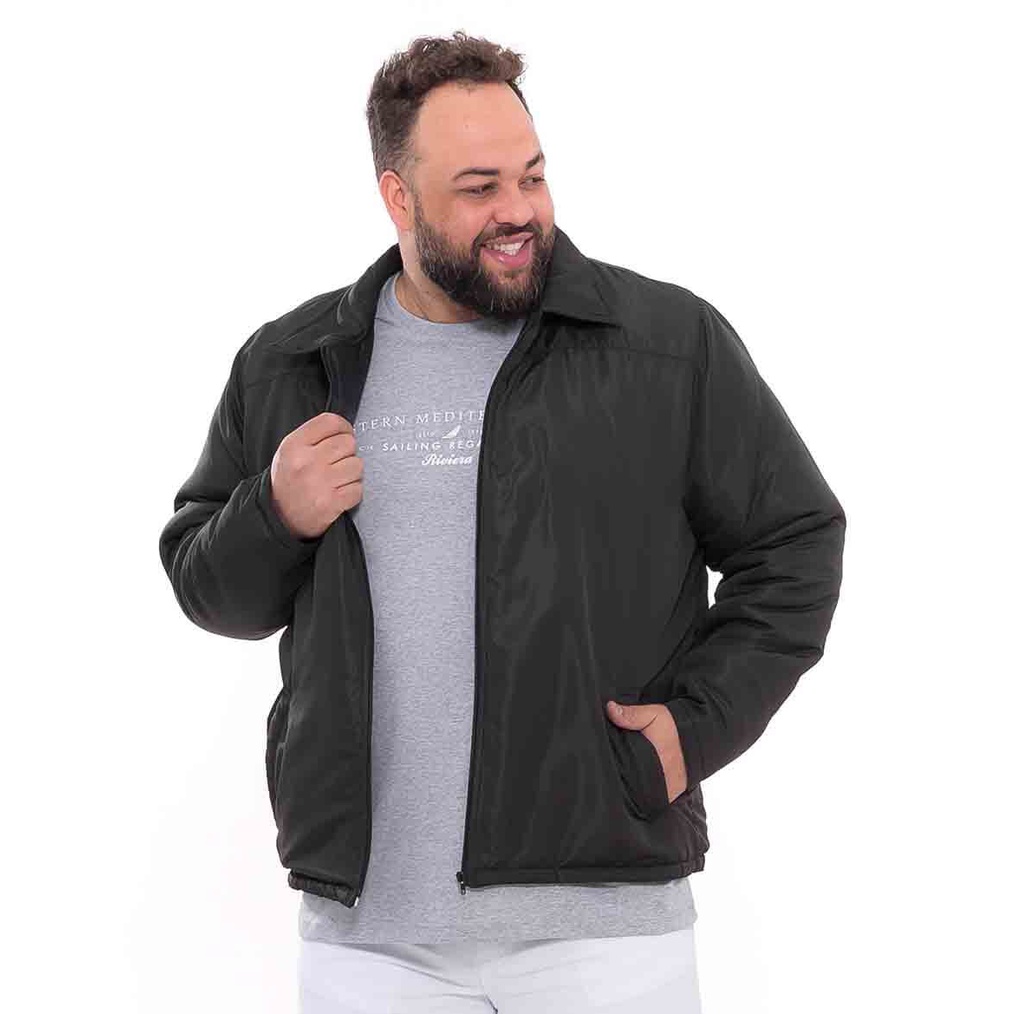 Jaqueta Acolchoada Plus Size Preta Com Gola Masculina Lisa Inverno