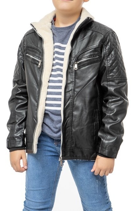 Jaqueta De Couro Sintetico Juvenil Forrada Casaco Crianca Shopee