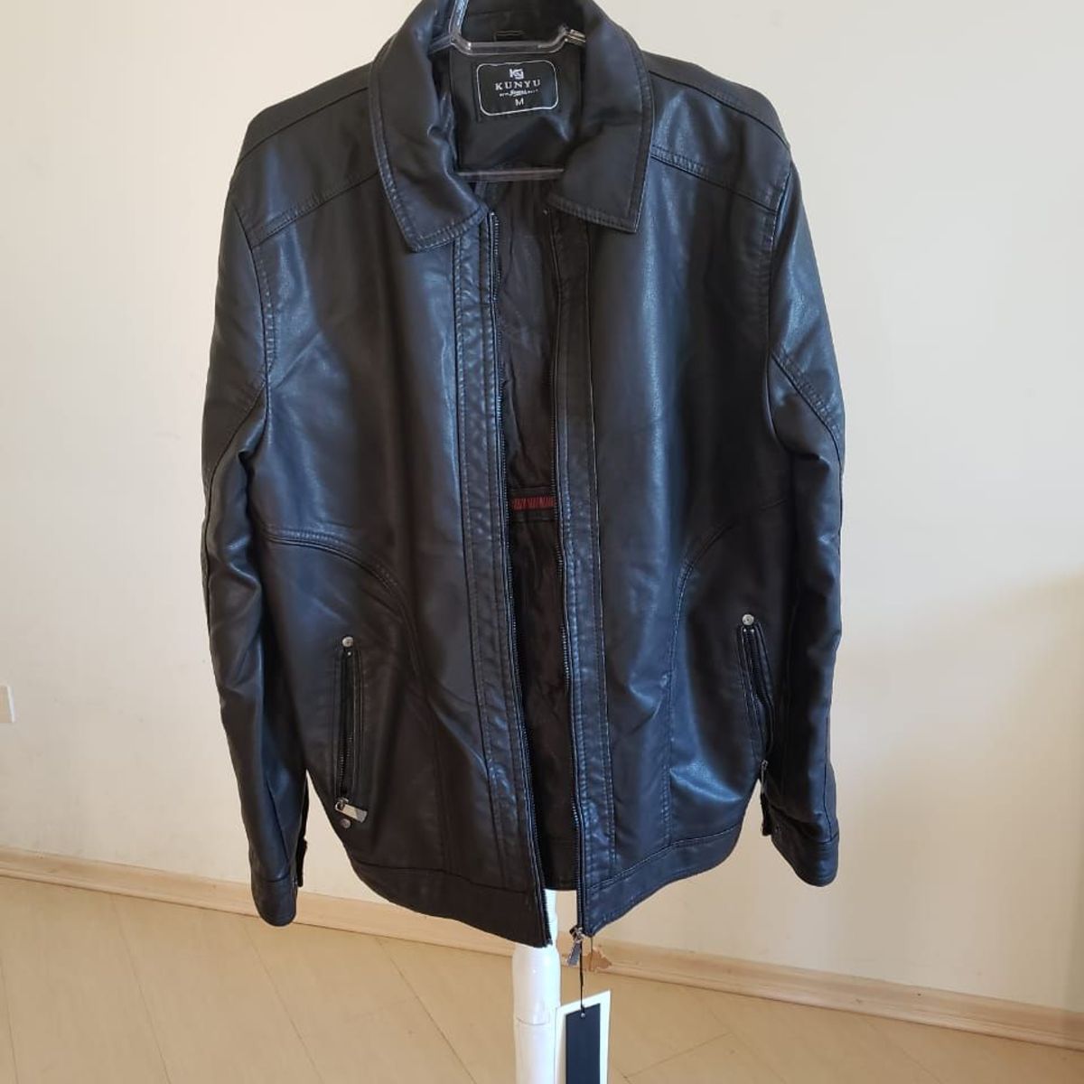 Jaqueta clearance masculina kunyu, Jaqueta Preta Couro Original Casaco Masculino Kunyu Nunca Usado clearance