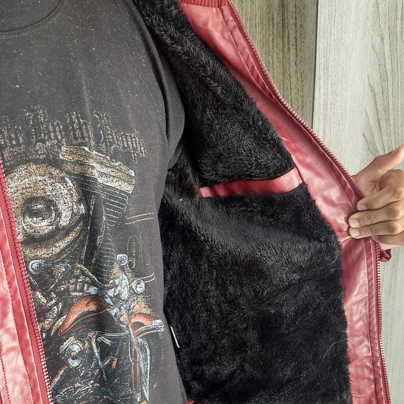 Jaqueta Masculina de Couro Poliuretano Pu Aveludada com Toca