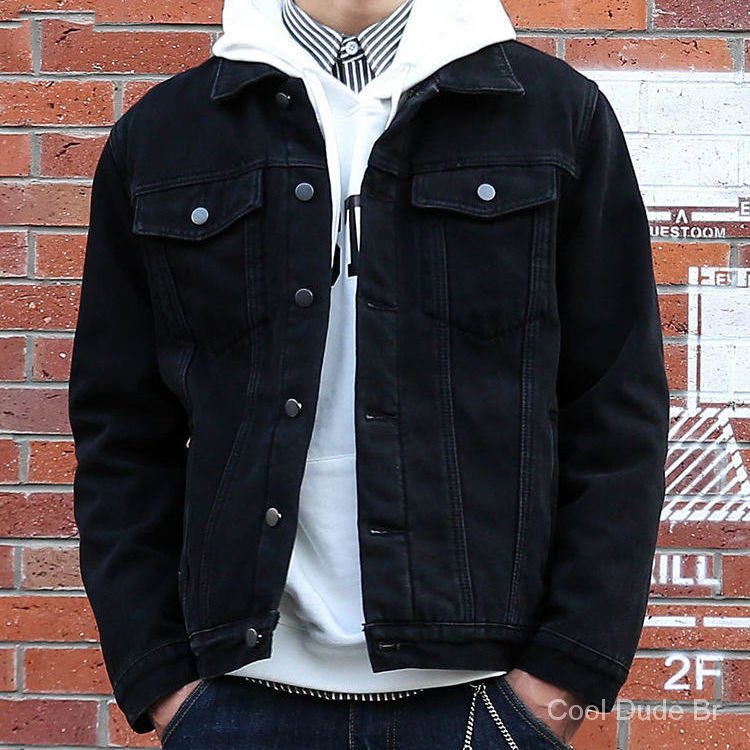 Jaqueta Jeans Masculina Slim Fit Preta Casaco De Ganga Jaqueta