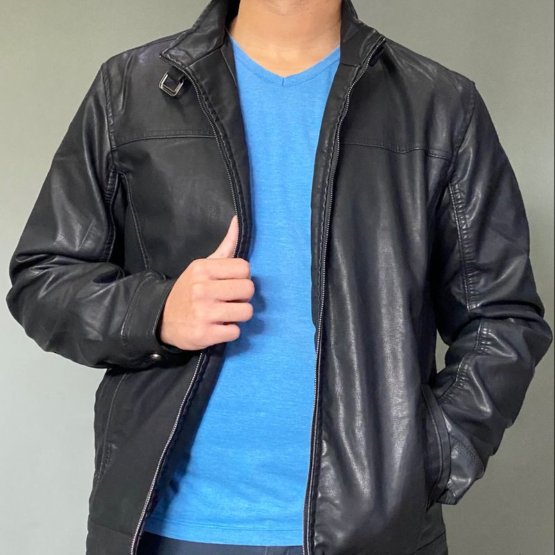 Jaqueta Preta Couro Original Casaco Masculino Kunyu Nunca Usado