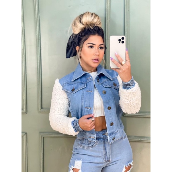 jaqueta jeans manda de ovelha. Shopee Brasil